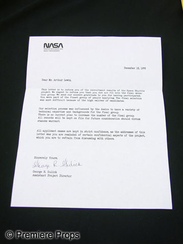 You Are The ExperimentTaken from the set of The Box, this is Arthur Lewis' (James Marsden) screen used, hero rejection letter from NASA. (letter 8.5" x 11") This is screen used and very detailed!
