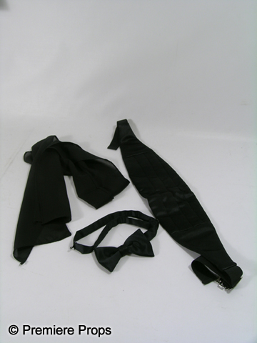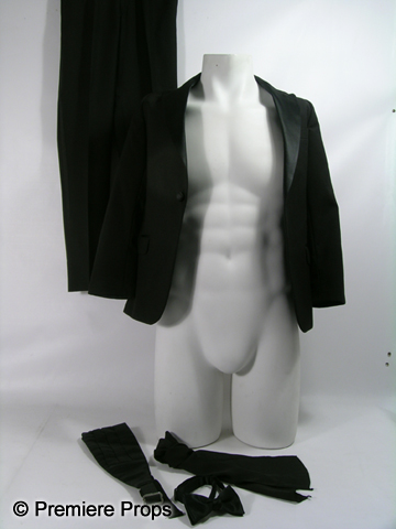 You Are The ExperimentTaken from the set of The Box, this is Arthur Lewis' (James Marsden) stunt double's, screen worn, black single button "After Six" tuxedo jacket, (No size), black with chrome clasps "B24" tuxedo dress pants, (No size) black elastic band with chrome clasps cummerbund, (No size) black elastic band bow-tie, (No size) and black scarf. (No size)
