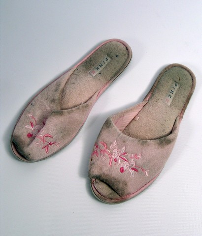 Misery loves family.Straight from the set of the award winning film, August: Osage County, this is Violet Weston (Meryl Streep) screen worn, hero, olive cotton long sleeve slightly distressed from production 'St. John's Bay' turtleneck top, heather grey with elastic waist 'DKNY' jersey pants, and worn pink terry cloth open toe with floral print 'Pink' slippers. Includes wardrobe tag!