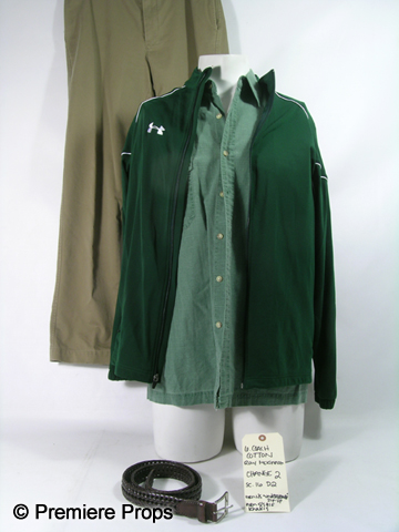 Based On The Extraordinary True StoryStraight from the set of the heart warming film, The Blind Side, this is Coach Cotton's (Ray McKinnon) screen worn hero green with white trim "Under Armour" zip-up sweater, (Size M) green "St John's Bay" short-sleeve button-down shirt, (Size M) khaki "Roundtree & Yorke" pants, (Size 32x34) and brown with chrome buckle "Roundtree & Yorke" braided belt. (Size 36). Includes wardrobe tag!