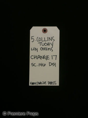 Based On The Extraordinary True StoryDirect from the set of The Blind Side, this is Collins Tuohy (Lily Collins) screen worn white and gray "Marc Jacobs" knee length dress with zipper and tie closure in the back. (Size 0) This costume is complete with a wardrobe tag!