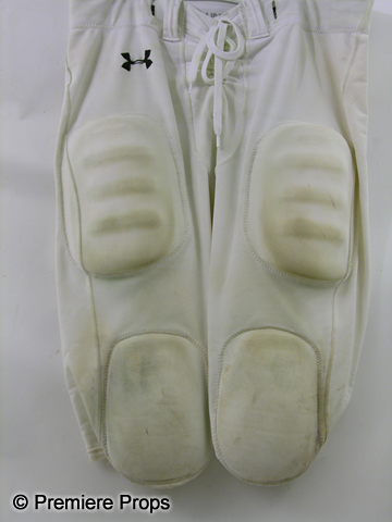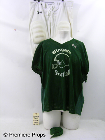 Based On The Extraordinary True StoryDirect from the set of The Blind Side, this is Michael Oher's (Quinton Aaron) screen worn, stunt double's, green mesh short sleeve v-neck with "Wingate Football" logo on chest "Under Armor" jersey, (size 3XL) white with drawstrings and lace up fly pads at knees and thighs "Under Armor" football pants, (size 3XL) and green with two metal d-rings belt. This is a screen worn practice uniform. Includes wardrobe tag!