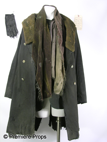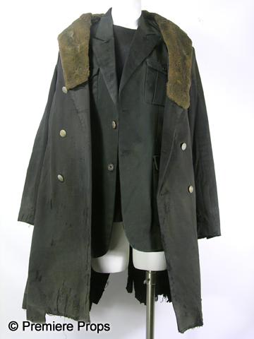 Some will kill to have it. He will kill to protect it.As seen in the new action thriller, The Book of Eli, this is Carnegie's (Gary Oldman) hero worn out and dirty, costume set featuring a black "Helmut Lang" overcoat with fur-lined collar, (Size S) black "G-Star" 4-pocket blazer, (Size L) black "Gap" long sleeve crew neck thermal, (Size S) brown felt scarf, (No size) and black leather gloves. (No size) Includes wardrobe tag!