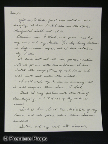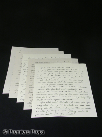 Some will kill to have it. He will kill to protect it.As seen in the new action thriller, The Book of Eli, this is a 5 page set of photocopied handwritten pages of The Holy Bible. (approx 10 7/8" x 8 3/8")