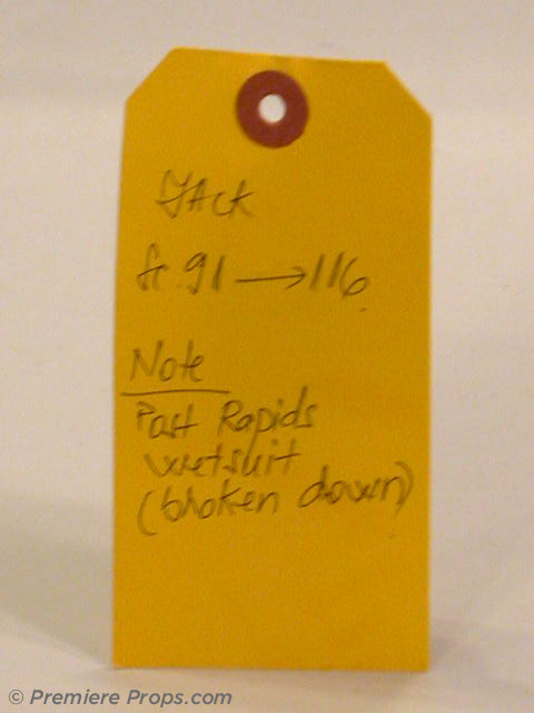 This is an aged neoprene dive suit worn by Jack (Cole Hauser) in "The Cave." No size indicated, features "McAllister Subaquatic Explorations" patch on left sleeve. Dive suit is distressed and aged from use on screen. Includes costume department wardrobe tag! This wardrobe was screenworn!