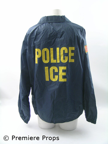 every day thousands of people illegaly cross our borders...only one thing stands in their way. America.From the set of Crossing Over, this is Max's (Harrison Ford) screen worn navy nylon with yellow "POLICE ICE" lettering on front and back "Law Pro" long sleeve snap front jacket (size L), and grey cotton "Dockers" front pleat pants. (size 34 x 34) Includes wardrobe tag!