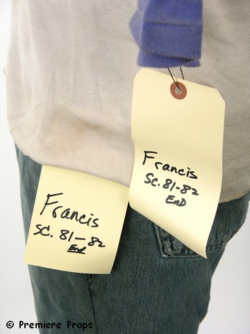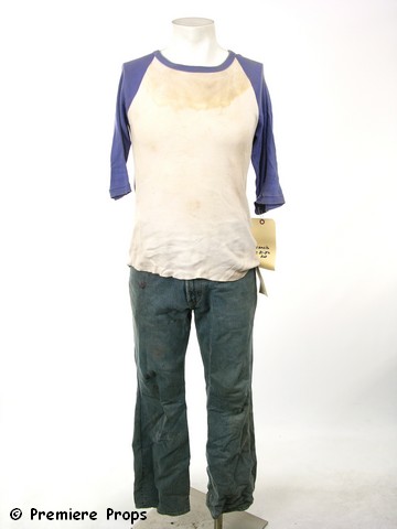 Trouble is Their Only Defense Against Boredom Straight from the set of The Dangerous Lives of Altar Boys (2002), this is Francis Doyle (Emile Hirsch) blue and white baseball shirt with stains for filming and 'Gap' boot fit blue jeans (size 31x30). Also includes weathered pair of 'Converse' sneakers (size 9). Wardrobe tags read, "Francis Sc. 81-82 End."