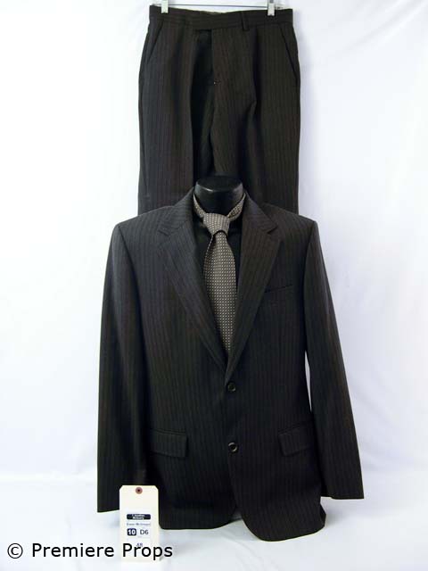Deception, this is Jonathan's (Ewan McGregor) screenworn hero costume. This ensemble features a dark grey with pale herringbone and brown and tan stripes "Hugo Boss" 2 piece, 2 button suit and a black with tiny silver box and circle pattern "Gucci" neck tie. Includes the original wardrobe tag!