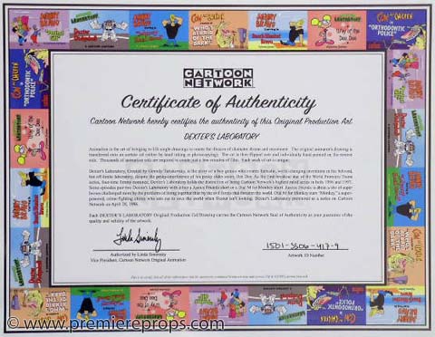 This is an original production cel featuring Dexter's samurai robot. It measures 12.5" x 10.5" and does not come matted. It does include a Certificate of Authenticity from "Cartoon Network!"