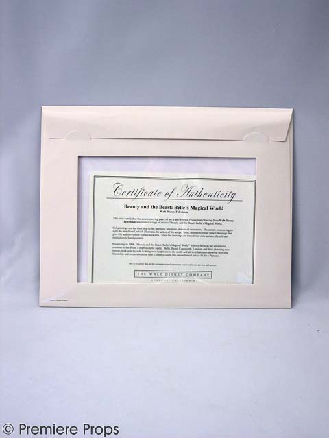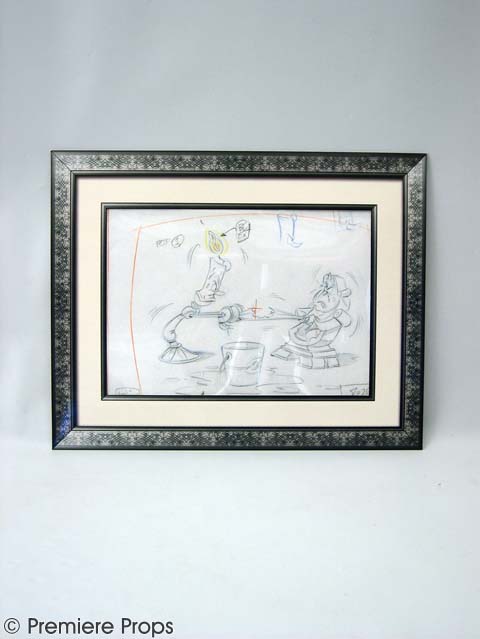 Beauty and the Beast: Belle's Magical World, this is an original drawing featuring Lumiere (Jerry Orbach) and Cogsworth (David Ogden Stiers). This one of a kind collectible measures approximately 15" x 12".