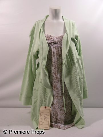 Inspired by the amazing true story of Winter.Direct from the set of Dolphin Tale, this is Lorraine (Ashley Judd) screen worn, green waffle print 'Charter Club' robe with self tie belt, (size L) and brown and white floral print with lace at the bust 'Ann Taylor' dress. (size 8P) Includes wardrobe tag!
