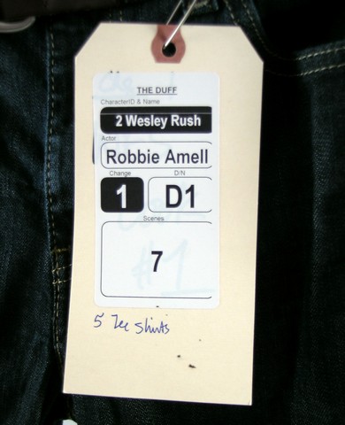 Every duff has their day.Straight from the set of The DUFF, this is Wesley (Robbie Amell) screen worn, hero, grey with red sleeves three buttons at the neck 'Alternative' shirt, white and red with double loop belt, dark denim 'Levis' jeans, and silver and red lace up the front 'Asics' shoes. (size 12) Includes wardrobe tag!