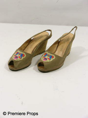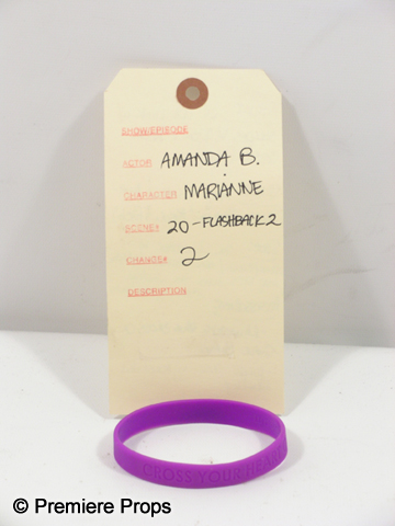 The rumour-filled totally FALSE account of how I ruined my flawless reputationAs seen in the new high school comedy, Easy A, this is Marianne (Amanda Bynes) screen worn, hero, short sleeve hot pink with stripes, open v-neck chest 'H&M' shirt, (size 4) purple rubber 'Cross My Heart Club' bracelet, tan slingback with pink, yellow and tan cartoon graphic ontop of the toe, tan woven wedge 'Marc by Marc Jacobs' shoes. Includes wardrobe tag!