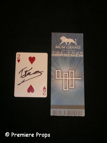 The closer you look, the less you'll see. Straight from the set of Now You See Me, this is Etienne (Jose Garcia) screen used, hero, signed playing card and MGM Grand The Four Horsemen ticket. Condition and signature may vary.