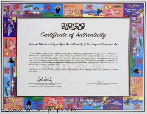 It includes a Certificate of Authenticity from "Cartoon Network" and it's Authenticity is Guaranteed! A perfect gift for fans of the cartoon!