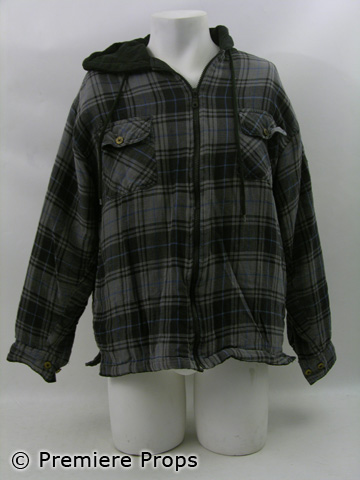 Family Is ForeverDirect from the set of Rob Zombie's Halloween II, this is Ned Atkins' (Ezra Buzzington) screen worn for stunt, black light blue and gray checkered flannel zip up insulated with hood long sleeve "Craftsman" jacket, (size M) tan denim long sleeve zip up with collar and pockets "Faded Glory" jacket, (size M) dark gray denim five pocket "Dickies" jeans, (size 32x32) brown leather with brass metal buckle "Boston" belt, (Size 32) and brown leather lace up with rubber soles "Brahma" boots. (size 9.5) Includes wardrobe tag!