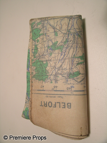 Once upon a time in Nazi occupied France...Straight from the set of Quentin Tarantino's critically acclaimed masterpiece, Inglourious Basterds, this is Lt. Aldo Raine (Brad Pitt) screen used, hero, green, beige, and black folded and torn map of "Belfort." (approx. 4"X6")