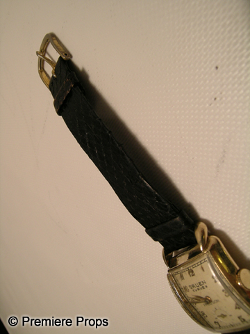 A basterd's work is never done.From the set of the uproarious thrill-ride, Inglourious Basterds, this is Lt. Aldo Raine (Brad Pitt) screen used, hero, gold "Gruen Curvex Percision" watch with worn out dark brown leather wrist strap. (approx. 9"X1")
