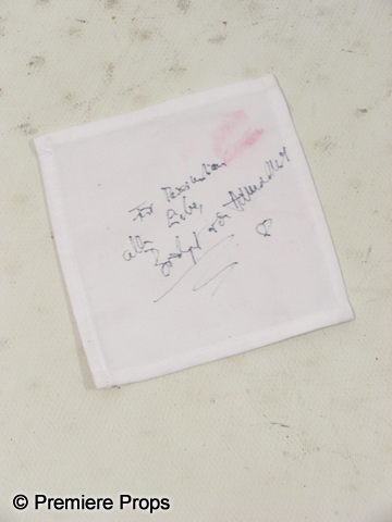 Once upon a time in Nazi occupied France...Straight from the set of Quentin Tarantino's critically acclaimed masterpiece, Inglourious Basterds, this is Bridget von Hammersmark (Diane Kruger) screen used for autograph, white cloth napkin with 'Fur Max, Alli Liebe, Bridget von Hammersmark' signed on the front with a lipstick kiss. (approx. 6 1/2" x 6 1/2") Condition will vary from photo.