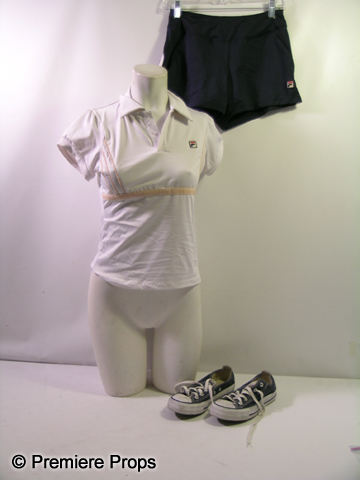 Featuring Miley Cyrus & Demi Moore Straight from the set of LOL, this is Janice (Lina Esco) screen worn, white 'Fila' athletic top, (size XS) dark blue 'Fila' athletic shorts, (size XS) and dark blue 'Converse' shoes. (size 6)