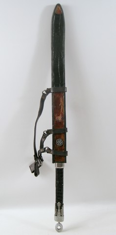A Battle for Honor. A Bloodshed for Justice. Straight from the set of Last Knights, this is Raiden (Clive Owen) screen used, hero, metal with engraved blade leather handle with plastic design at the end sword with leather snakeskin design sheath. (approx. 40 1/2" long)