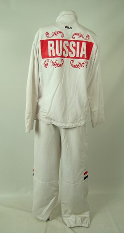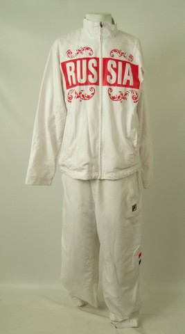 The Best Never Rest Straight from the set of Red 2, this is Marvin (John Malkovich) screen worn, hero, burgundy zip up the front with buttons, faux fur collar 'Burberry' jacket with Russia logo on the front and back, white 'Fila' track jacket and pants with Russisa logo on the front and back, (size XL) white Russia cap, and white and red lace up the front vintage 'Nike Air Jordans' shoes. (size 13)