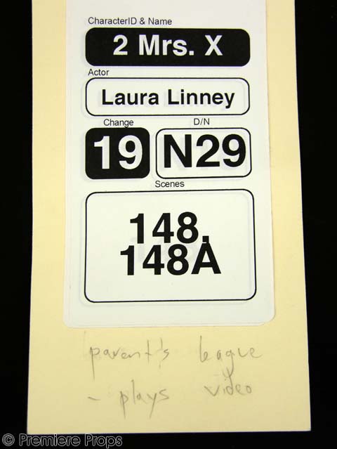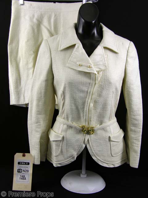 Mrs. X's (Laura Linney) screenworn navy blue & white striped "Peter Som" sailor-style jacket. Also, a pair of navy blue high-waisted "Peter Som" sailor-style pants with brass buttons. Included, is the original wardrobe department tag.