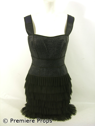 All's fair when love is war.As seen in the new thriller, Obsessed, this is Sharon's (Beyoncé Knowles) screen worn black and blue "Zac Posen" woven bodice with black ruffle skirt. Includes wardrobe tag!