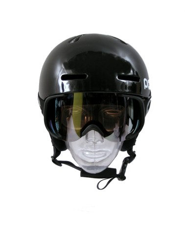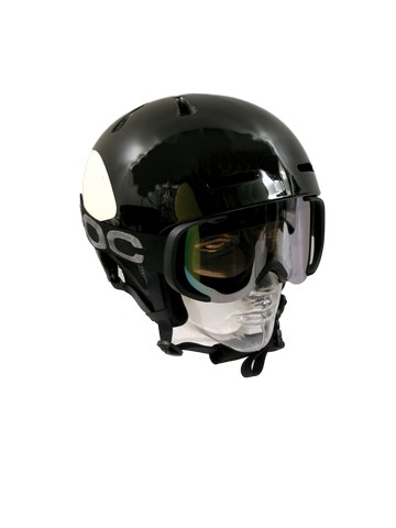 Find Your Breaking Point Straight from the set of Point Break, this is Chowder (Tobias Santelmann) screen worn, hero, shiny black with black lining 'POC' snowboard helmet, (size XL/XXL) and dark orange lens with black and grey band 'POC' goggles.