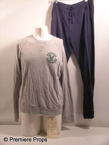 Fear The Demon That Doesn't Fear God Straight from the set of The Possession, this is Clyde (Jeffrey Dean Morgan) screen worn, hero, heathered grey long sleeve with Westcott River Hawks on the front 'RLX' sweatshirt, (size L) and navy 'J. Crew' sweatpants. (size L) Includes wardrobe tag!