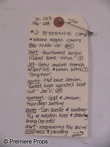 Fear The Demon That Doesn't Fear God Straight from the set of The Possession, this is Stephanie (Kyra Sedgwick) screen worn, hero, grey with self tie and brown buttons 'Gryphen' trench jacket, (size S) raspberry three quarter length sleeve scoop neck 'Bordeaux' shirt, (size XS) medium blue denim 'Joe' jeans, (size 25) and tan suede and leather with wooden heel boots. Includes wardrobe tag!
