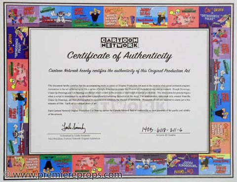 It includes a Certificate of Authenticity from "Cartoon Network" and it's Authenticity is Guaranteed! A perfect piece to display!