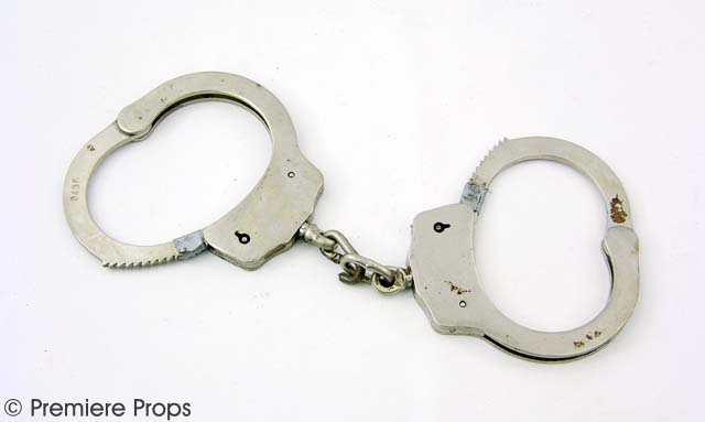 A remarkable item direct from the set of the film, this is a pair of hand cuffs that were screenused on Alice (Milla Jovovich). The metal cuffs are non-functional and have a broken link.
