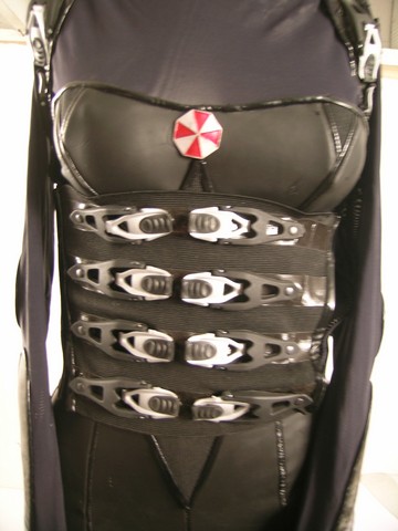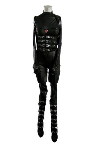 Evil will end.Straight from the set, this is Alice (Milla Jovovich) stunt, black with buckles on the front with zippers on the side custom made vest, black with mesh top, Umbrella pin on the front long sleeve with zipper in the back jumpsuit with gloves attached, and tall black boots with buckles.