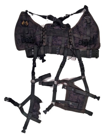 Evil will end.Straight from the set, this is Alice's (Milla Jovovich) screen worn, production distressed, stunt, army green coat with two patches and a cut out sleeve. Includes dark grey production distressed tank top(M), black distressed pants(L), army green corset, and black boots. Wardrobe tag included.