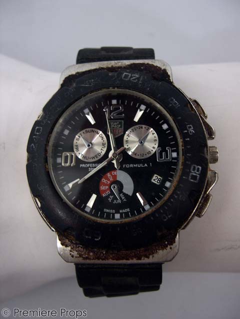This a screen worn water resistant faux "Tag Heuer" watch and the face measures approximately 1.7" x 1.6". Bring this one home today and put it in a shadow box to add to your Resident Evil collection!