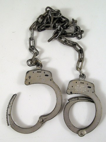 Straight from the set of Red 2, this is a screen used, rubber handcuffs with chain.