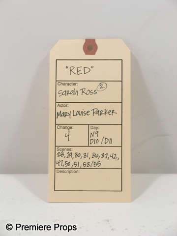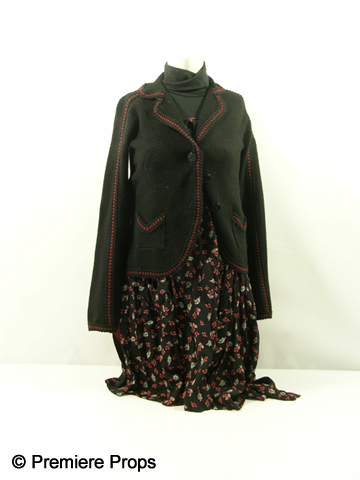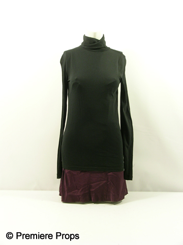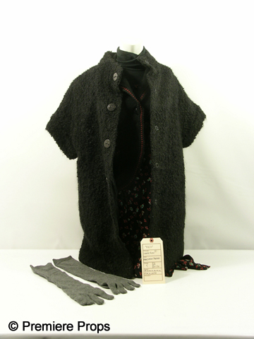 Looking For A Little Action.As seen in the new action thriller, Red, this is Sarah (Mary-Louise Parker) screen worn, hero, black short sleeve nubby alpaca and mohair high neck snap front 'Vince' coat, (size M) black boccie three button front notched collar with self tie and red stitching around hems and down sleeves 'Femme-Sandra Angelezzi' cardigan, (size S) black with red and green leaf print rayon sleeveless scoop neck with key hole wrap around dress, (size S) black long sleeve cotton 'J. Crew' turtleneck shirt, (size S) plum satin bias cut polyester slip with thin straps slip, and dark grey cashmere 'Club Monaco' gloves. Includes wardrobe tag!