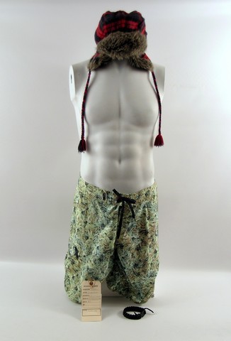 And a Whole School Full of Wild Fools From the set of School Dance, this is Julian (Julian Goins) screen worn, hero, multicolor green with shades of moss 'LRG' board shorts, (size 34) red plaid with fur over the ears cap, and black braided bracelet. Includes wardrobe tag!