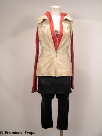 Prepare For A 3D Ride Through Hell From “Silent Hill: Revelation” (2012) this is the full costume includes seven pieces that were worn throughout the film by the character of Heather (Adelaide Clemens). It is unusual that a character wearing only one outfits throughout a film, so this has even greater value. It reminds us that she, like all the people who populate this atmospheric thriller are trapped in their own past, promises, responsibilities, and unfulfilled destiny. In fact, at one point a high school classmate remarks that she must by her clothes at the “Good Will”. Heather is indeed a character in search of roots, of home, and most important of truth of her past, and her outfit reflects this. The vest she wears has great significance to her, since it is given to her by her father on her birthday, but has even great symbolic meaning to her. This hero screen-worn ensemble includes the red and black plaid with army green under coat 'Talula' jacket, (size XS) worn from production white leather 'Danier' vest, (size 2XS) red with glitter zip up the front hooded thin sweater, purple and silver floral print sleeveless top, worn from production white with frayed collar 'Frafalure' tank top, (size M) dark purple rubber like stretch skirt, and dark purple 'Lululemon' athletic pants. (Size 4) Includes wardrobe tag.