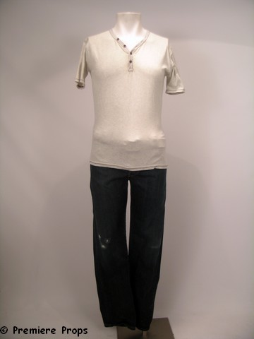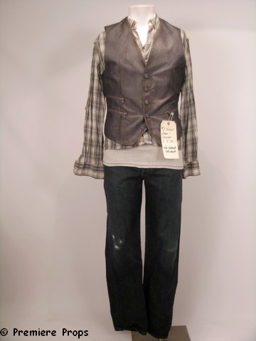 Prepare For A 3D Ride Through Hell The actual hero screen worn outfit worn by Vincent (Kit Harington) in “Silent Hill: Revelation” (2012). A rare item in that each character wore only one outfit for the entire production, so this is a one and only original. It shows both a haphazard lifestyle, perhaps even a bit of a vagabond, while also representing independence, and with so much zippered and buttoned pieces, and maybe more important the fact that he is hiding a monumental secret. This screen worn hero ensemble includes a grey with thin white stripes, zipper pockets, button up the front 'John Varvatos' vest, (size 38) grey, black, and brown 'FCUK' button up-shirt, (size XS) grey short sleeve with buttons at the neck 'FCUK' t-shirt, (size XS) dark blue denim 'Levi 501' jeans, (size 30) and black with metal design belt. Includes wardrobe tag.