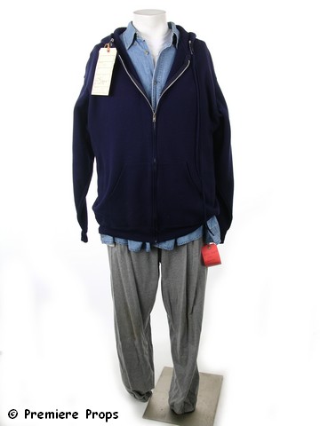 Watch For The Signs Straight from the set of Silver Linings Playbook, this is Pat (Bradley Cooper) screen worn costume. Change 1+2, on Day 1. Scenes 1-10. Worn by Pat when leaving mental hospital and arriving home. One pair of 'Simply for Sports' thin grey sweat pants (size L). An 'American Apparel' white crewnect t-shirt (size L). A "Sonoma" oatmeal v-neck t-shirt (size L). A "Russel Athletic" navy blue zip front hoodie (size XL). A "Wrangler" blue denim shirt (size L 16-16 1/2 ) used as a photo double for the rented chambray shirt.