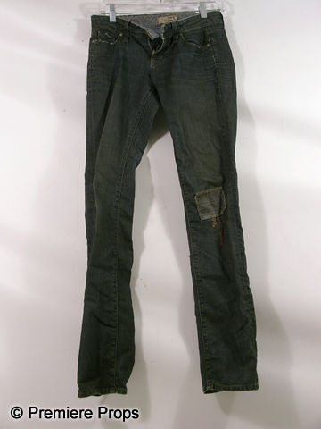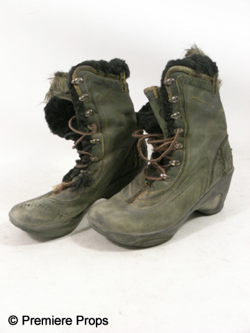 Deliver UsDirect from the set of The Book of Eli, this is Solara's (Mila Kunis) screen worn, hero, dirty, tan with chocolate brown, tan, yellow, and blue plaid flannel, button front, long sleeve, two chest pockets with flaps, hood, 'Arizona Jeans' shirt, (size M) slightly dirty dark blue "Paige" denim jeans with patch on the left knee, (Size 26) dark green plastic band with plastic bubble green face with clear top 'The Hulk' watch, and dirty, dark green suede with fur inside, lace up the front, age 'J41' boots. (no size)