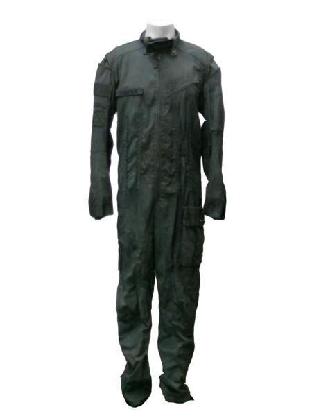 Make Every Second CountStraight from the set of the new thriller, Source Code, this is Colter Stevens (Jake Gyllenhaal) screen worn, very worn and sticky, grey cotton twill with multiple pockets, zipper front with buttons at the neck, American Flag and patches on the sleeve, multiple zippers, 'Colter' on the right chest Flight Suit. ('Stage 2' written inside)