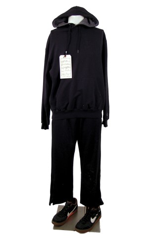 This is Billy Hope's (Jake Gyllenhaal) screen worn, hero, black 'Champion' hooded sweatshirt, (size L) black 'Russell' sweatpants, (size M) and black lace up the front 'Nike' shoes (size 11). Includes wardrobe tag.