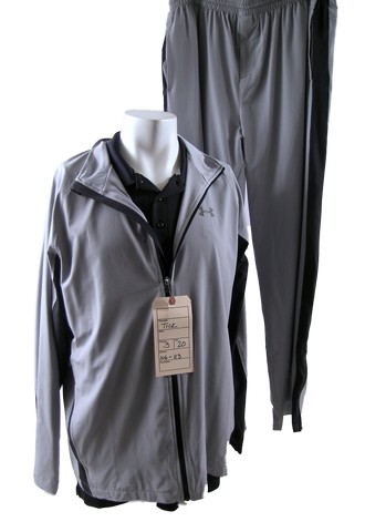 Believe in Hope. Direct from the set of Southpaw, this is Tick Wills (Forest Whitaker) screen worn, hero, grey with stripes 'Under Armor' track jacket and matching track pants, (size XXL) and black short sleeve 'Under Armor' polo shirt. (size XXL) Includes wardrobe tag.