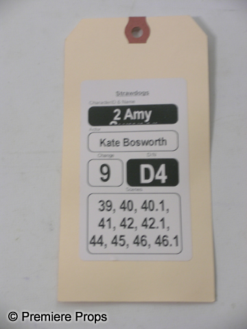 We take care of our own.Direct from the set of Straw Dogs, this is Amy (Kate Bosworth) screen worn, light pink linen wide scoop neck custom made dress, bone smooth leather with gold snap closure purese, and strappy wide 'Chloe' sandals. (size 7) Includes wardrobe tag!