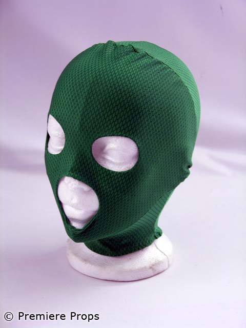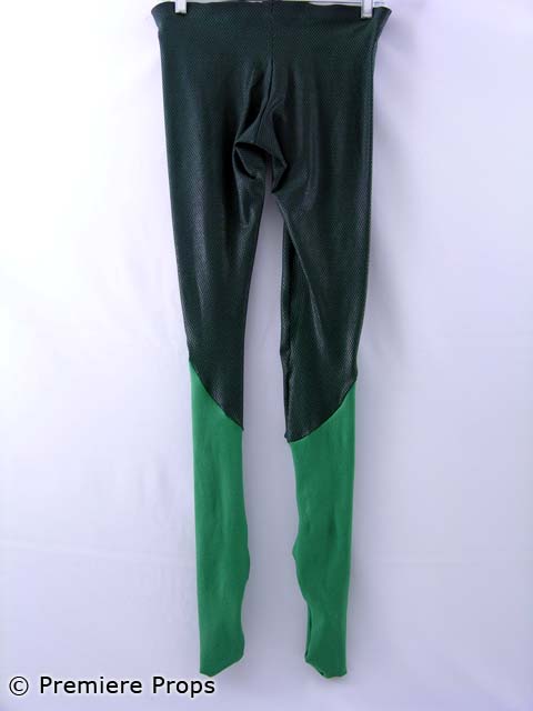 Superhero Movie, this is Rick Riker's (Drake Bell) screenworn hero costume. This is his Dragonfly costume which features a green and black with black dragonfly on front shirt with the material stopping at the wrists, green and black spandex pants and a green mask. Includes the original wardrobe tags!