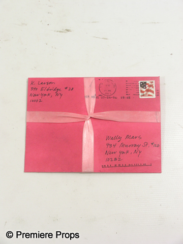 The most unexpected comedy ever conceived. Straight from the set of The Switch, this is Wally (Jason Bateman) screen used, hero, pink letter with Wally Mars address on the front and stamp envelope, sent from Kassie (Jennifer Aniston) regarding her 'I'm Getting Pregnant Party' with a ribbon tied around it. (approx. 7" x 5")