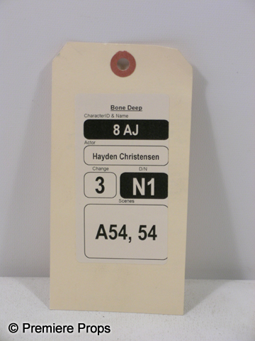 Everyone's after somethingAs seen in Takers, this is A.J. (Hayden Christensen) screen worn, hero, white 'Helmut Lang' suit jacket and pants, (size 48) black with grey stripes 'Dolce & Gabbana' long sleeve button front shirt, (size 15/38) white 'Fruit of the Loom' tank top, (size M) black with white stitch 'Trafalger' suspenders, and charcoal grey pressed felt with cream band 'Christy' hat. Includes wardrobe tag!